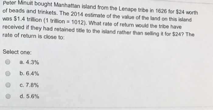 Solved In 1626 Peter Minuit Purchased Manhattan Island F Chegg Com
